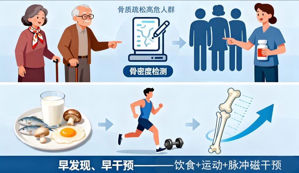 對于骨質(zhì)疏松癥的高危人群,包括絕經(jīng)后女性、老年男性、有骨質(zhì)疏松家族史者、長期服用激素類藥物者等,應(yīng)盡早進(jìn)行骨密度檢測,做到早發(fā)現(xiàn)、早干預(yù)。除了采用必要的治療手段外,還應(yīng)結(jié)合飲食調(diào)理,多攝入富含鈣、維生素D的食物,同時保持規(guī)律的運(yùn)動習(xí)慣,從多方面入手增加骨密度、降低骨折風(fēng)險,切實(shí)促進(jìn)全身健康。