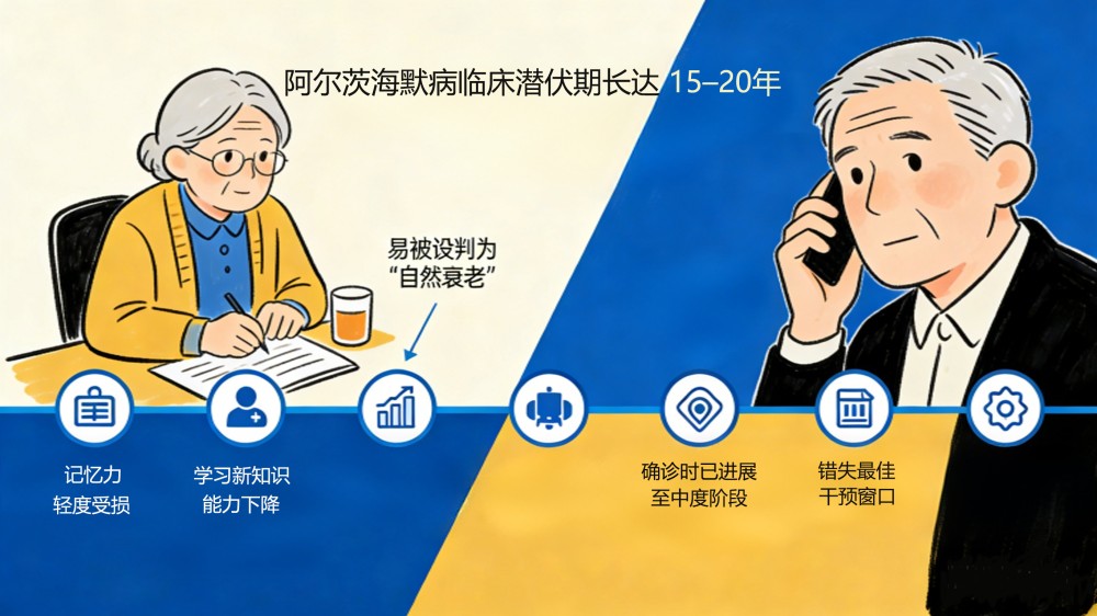 阿爾茨海默病作為全球高發(fā)的神經(jīng)系統(tǒng)退行性疾病,已成為我國(guó)重大公共衛(wèi)生與民生挑戰(zhàn)。權(quán)威數(shù)據(jù)顯示,我國(guó)60歲及以上人群癡呆患者約2000萬(wàn),其中阿爾茨海默病占比60%–70%;60歲以上人群輕度認(rèn)知障礙患病率達(dá)15.5%,對(duì)應(yīng)患者超3887萬(wàn)。該病臨床潛伏期長(zhǎng)達(dá)15–20年,早期僅表現(xiàn)為記憶力輕度受損、學(xué)習(xí)新知識(shí)能力下降等癥狀,易被誤判為“自然衰老”,近半數(shù)患者確診時(shí)已進(jìn)展至中度階段,錯(cuò)失最佳干預(yù)窗口。