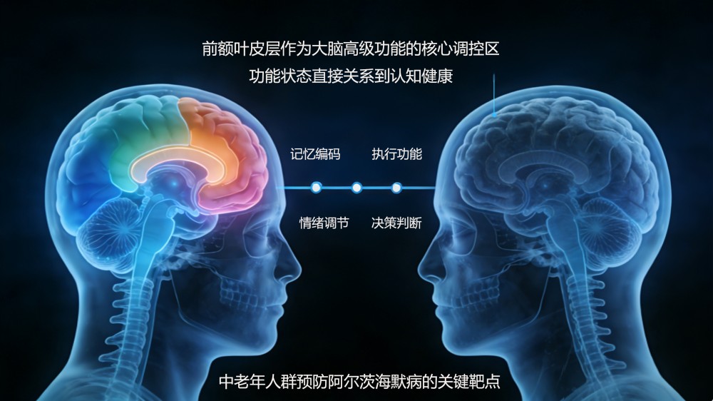 冬季氣溫驟降,人體血管收縮、血液循環(huán)速率改變,這一環(huán)境變化對腦部敏感區(qū)域的影響尤為顯著。前額葉皮層作為大腦高級功能的核心調(diào)控區(qū),主導(dǎo)記憶編碼、執(zhí)行功能、情緒調(diào)節(jié)與決策判斷,其功能狀態(tài)直接關(guān)系到認(rèn)知健康,也是中老年人群預(yù)防阿爾茨海默病的關(guān)鍵靶點(diǎn)。尤其對于60歲以上人群,前額葉區(qū)因年齡增長出現(xiàn)的生理性退變,疊加冬季低溫的病理性刺激,易誘發(fā)或加重認(rèn)知功能下降。