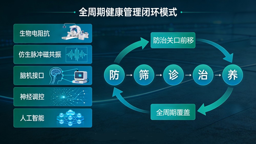 面對這一嚴峻形勢,惠斯安普依托自身在生物醫(yī)學(xué)領(lǐng)域的技術(shù)積淀,以生物電阻抗、仿生脈沖磁共振、腦機接口、神經(jīng)調(diào)控、人工智能五大核心技術(shù)為支撐,創(chuàng)新性地構(gòu)建起覆蓋“防、篩、診、治、養(yǎng)”全環(huán)節(jié)的閉環(huán)模式,將防治關(guān)口前移,實現(xiàn)從早期預(yù)防到全程康養(yǎng)的全周期覆蓋,精準破解傳統(tǒng)防治模式碎片化、精準度低、覆蓋范圍有限的痛點。