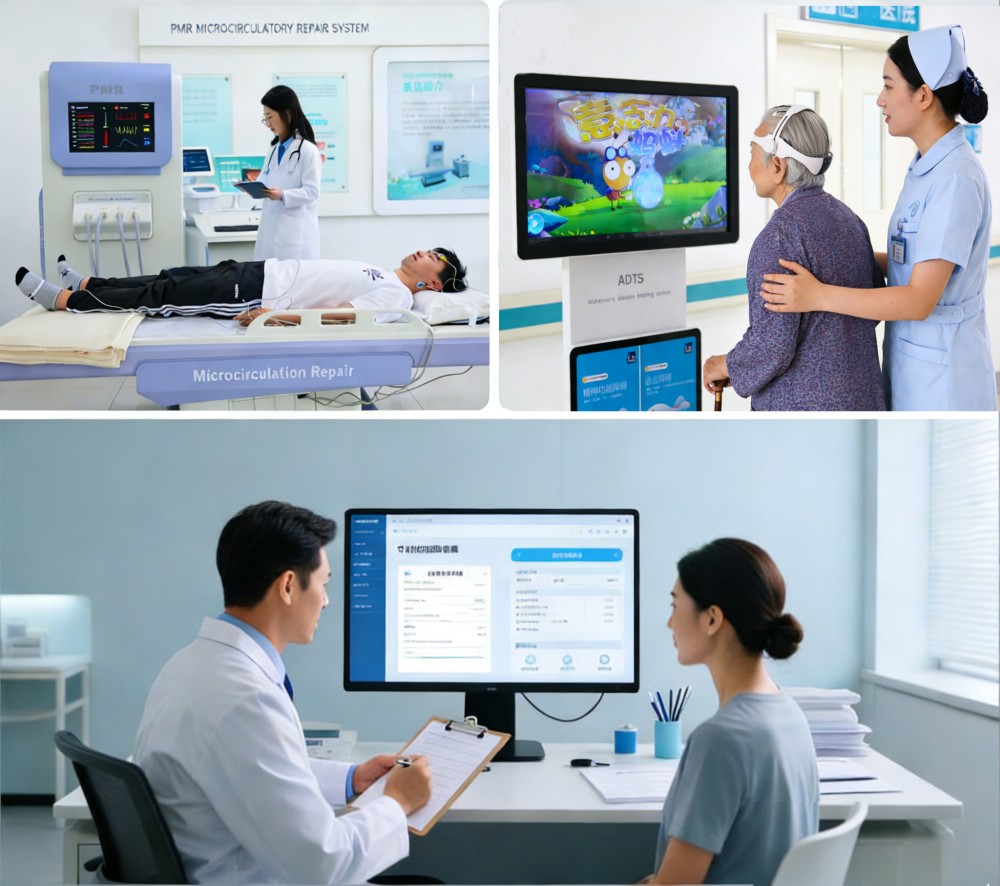 體檢中心設(shè)備升級(jí)后,可為體檢者提供多元化的非藥物干預(yù)服務(wù),精準(zhǔn)破解亞健康問(wèn)題與慢性病隱患。針對(duì)由不良生活方式引發(fā)的亞健康狀態(tài),以及肥胖、血糖異常、血壓偏高、早期動(dòng)脈硬化、炎癥、過(guò)敏、頭痛等常見(jiàn)慢性病隱患,體檢中心可通過(guò)PMR微循環(huán)修復(fù)、ADTS記憶力障礙干預(yù)、SMIS脈沖磁睡眠治療等專業(yè)手段,為體檢者定制個(gè)性化干預(yù)方案,有效改善心身亞健康狀態(tài),助力慢性疾病的緩解、控制與輔助治療。